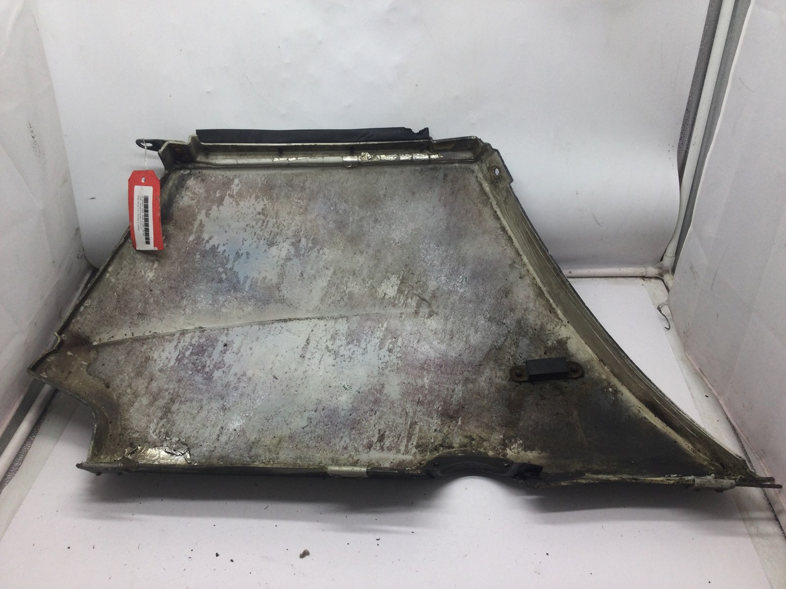 Good used side panel. Exhaust trim rivet is pulled out. Grey. Decal faded.
