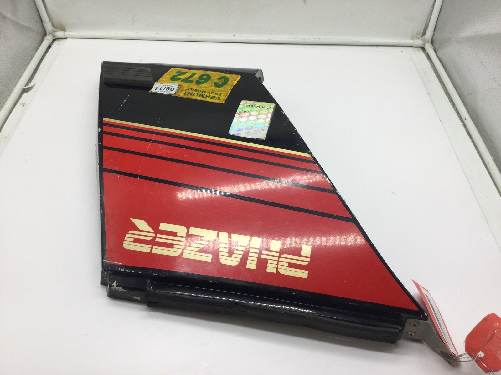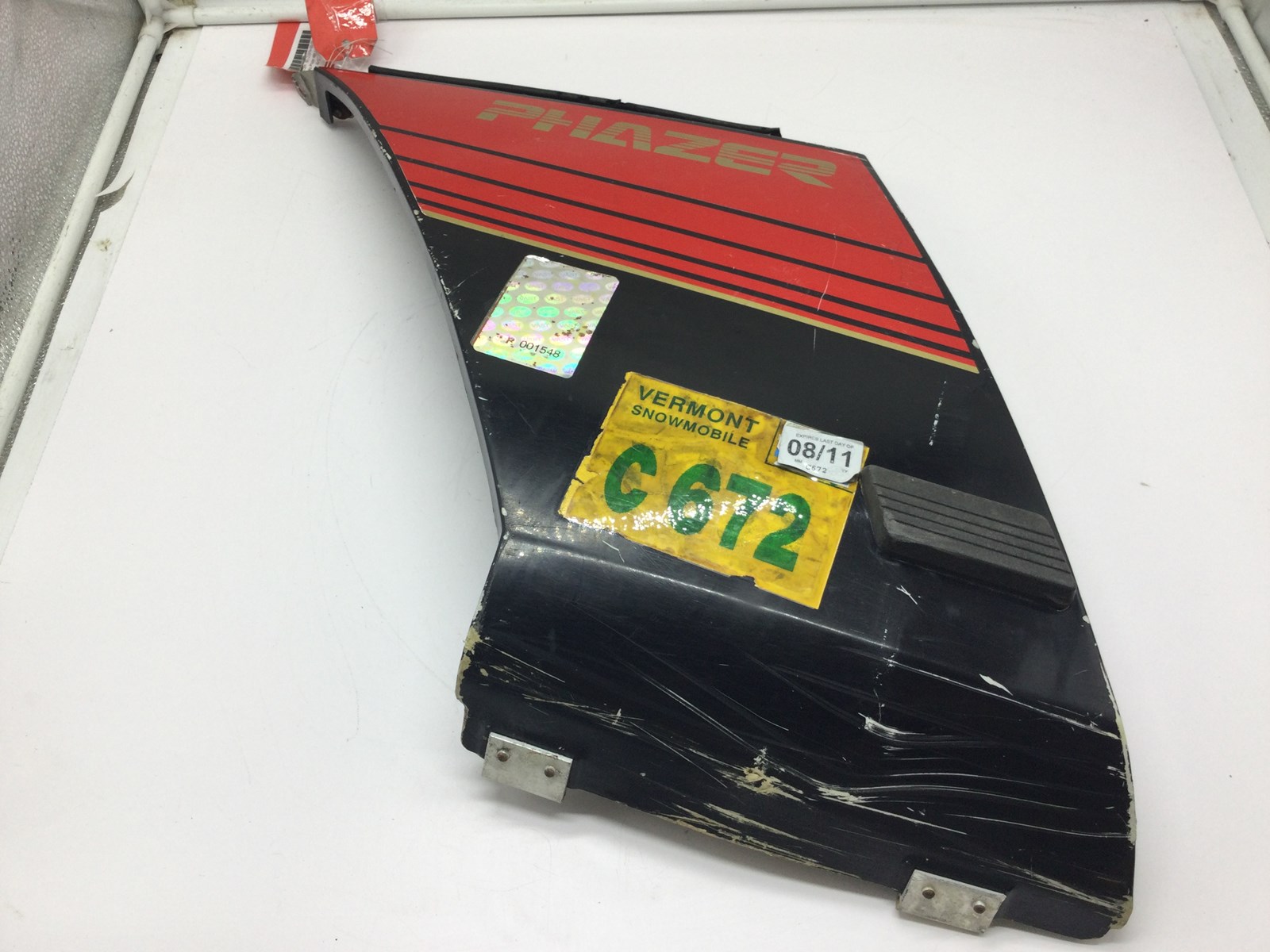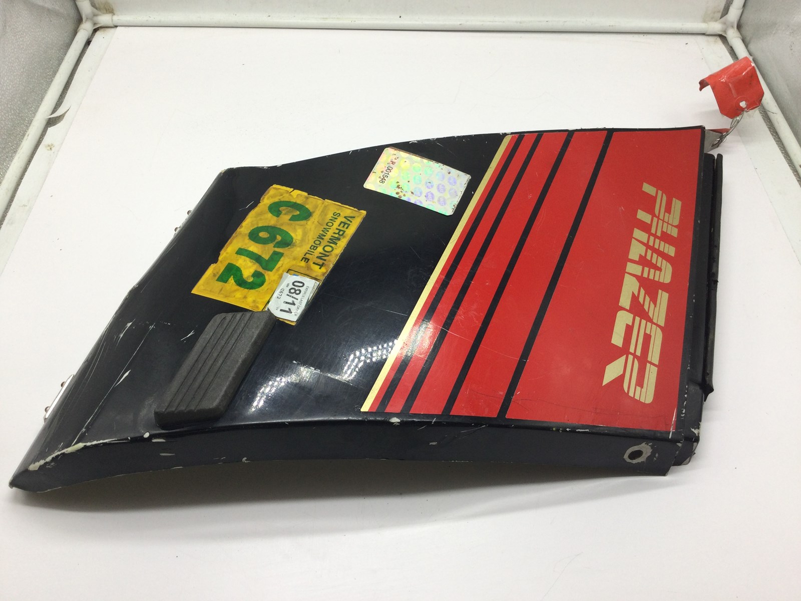 Good used left side panel black with red and white decal