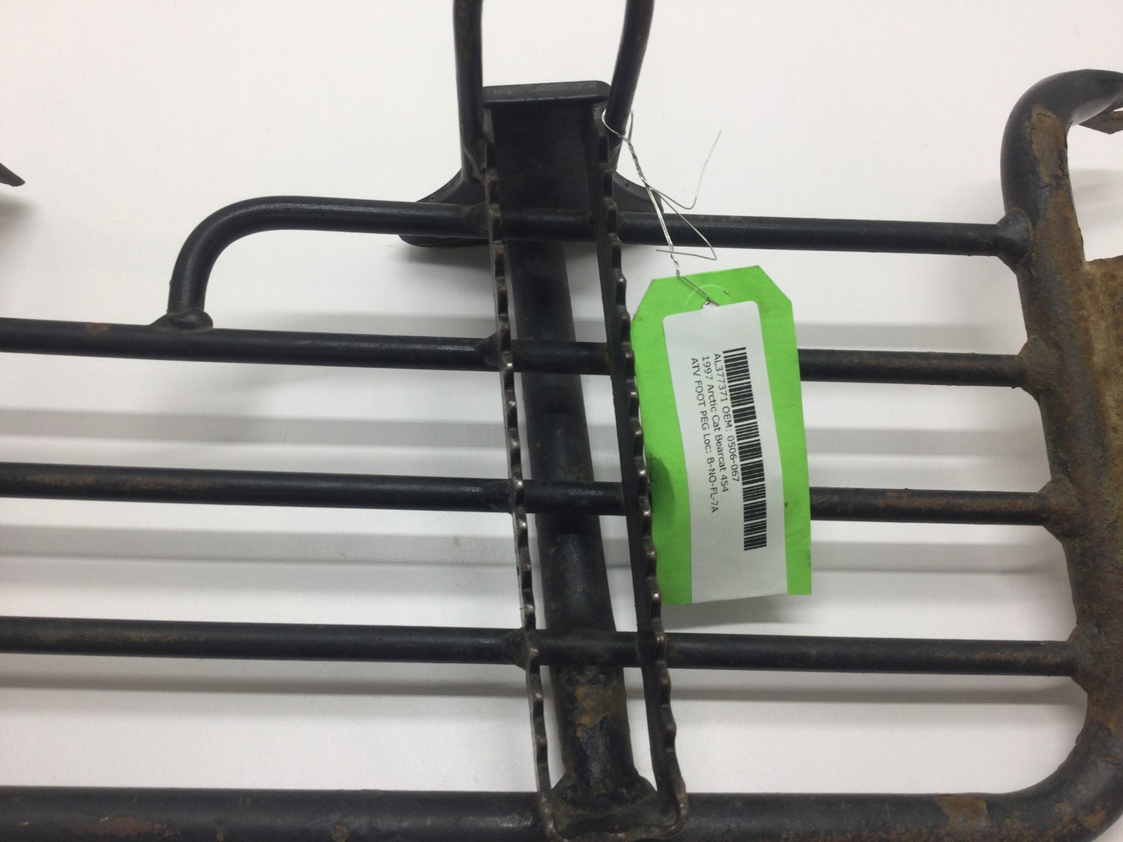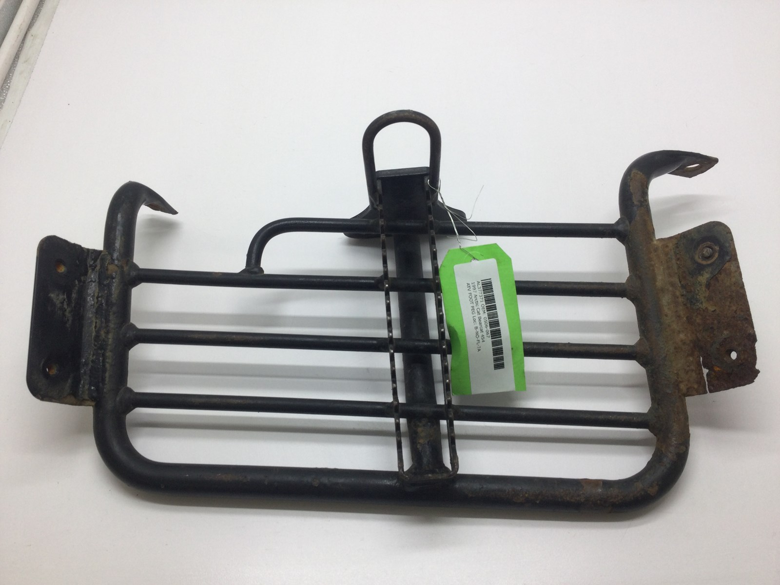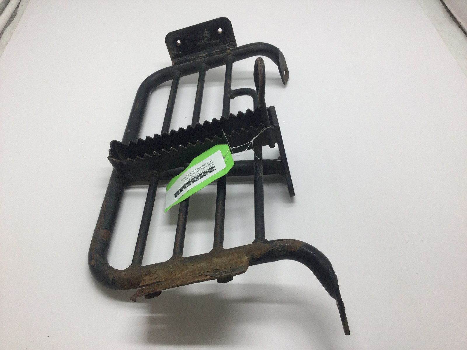 Good used footrest. Bracket has quite a bit of rust. Shows wear from use. One of the side mounts has started to crack