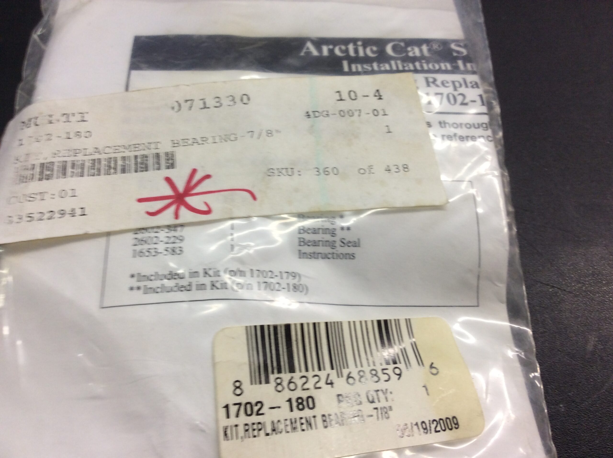 New OEM Arctic Cat bearing # 1702-180. Replaces #s 0107-223 / 0702-486 / 1602-052 / 1602-973 / 2602-347. An aftermarket replacement is available. See # RA014NPPB.