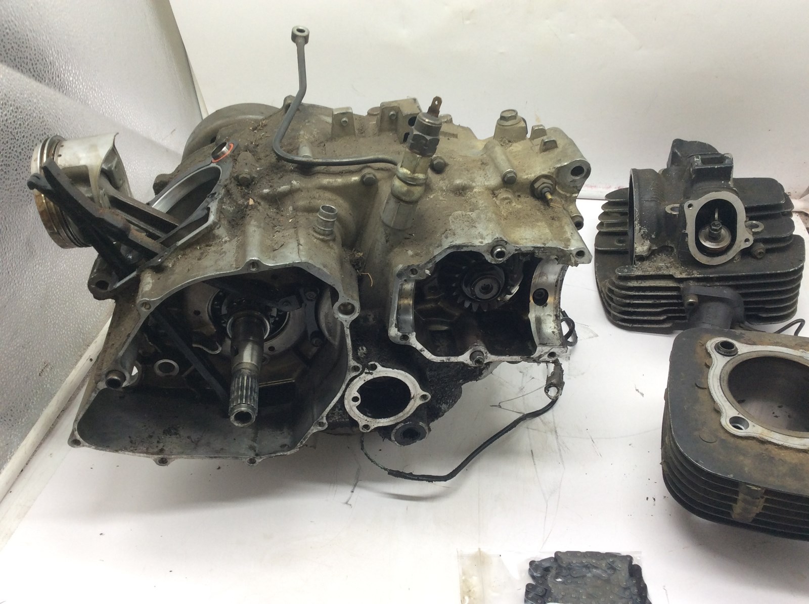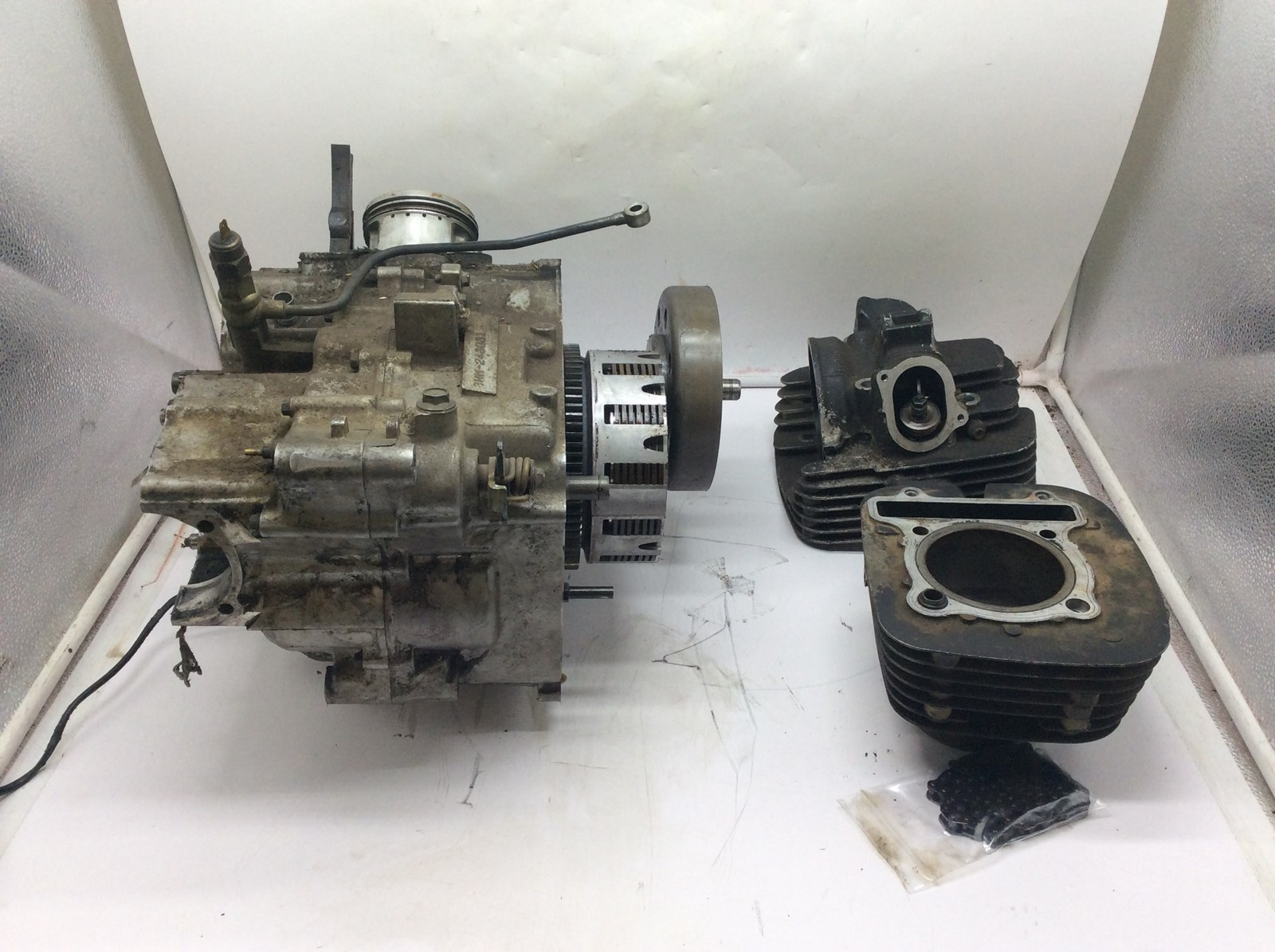 year unknown, motor turns over, cylinder and valves need to be cleaned. crankshaft appears to be in good condition form what we can see. motor has not be checked or tested and is being sold for parts, as is. cylinder and head are NOT bolted down