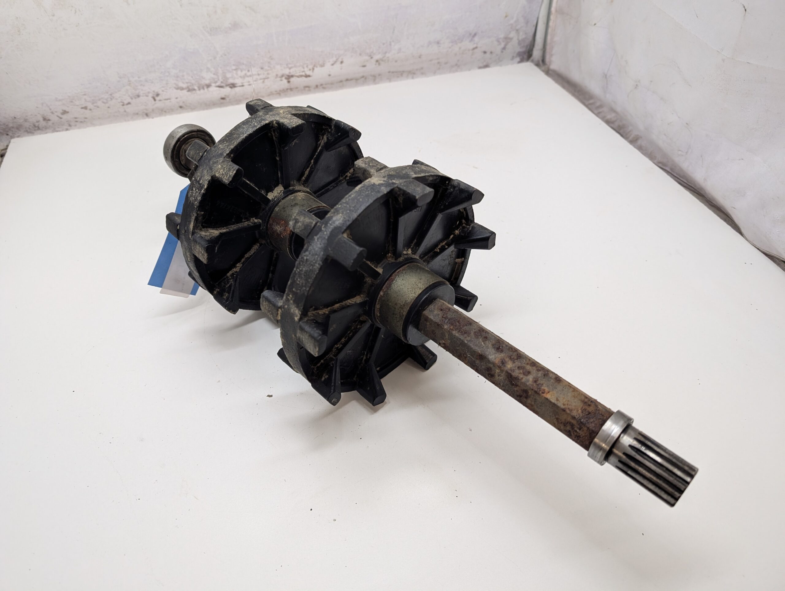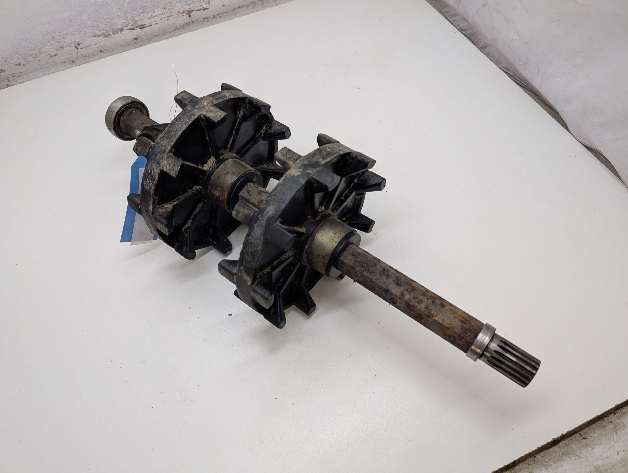 Good used OEM drive axle with two 9 tooth drive sprockets, Axle has a little surface rust and shows normal wear but is very usable
