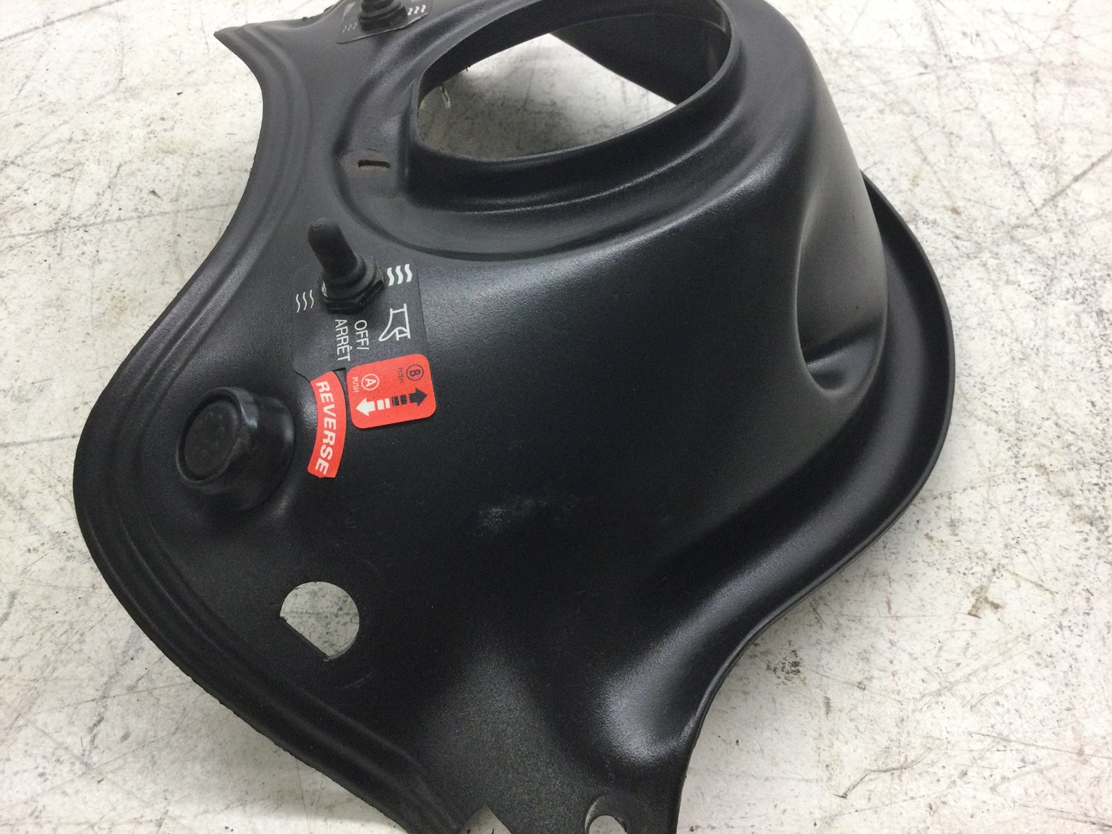 Good used OEM dash panel, Has both warmer switches, Has a couple small scratches, Has a small crack near center hole. THERE IS NO REVERSE BUTTON WITH IT AS SEEN IN PICTURES!!!