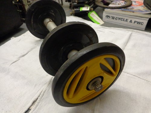 Includes all spacers, two yellow outside wheels and one center wheel.