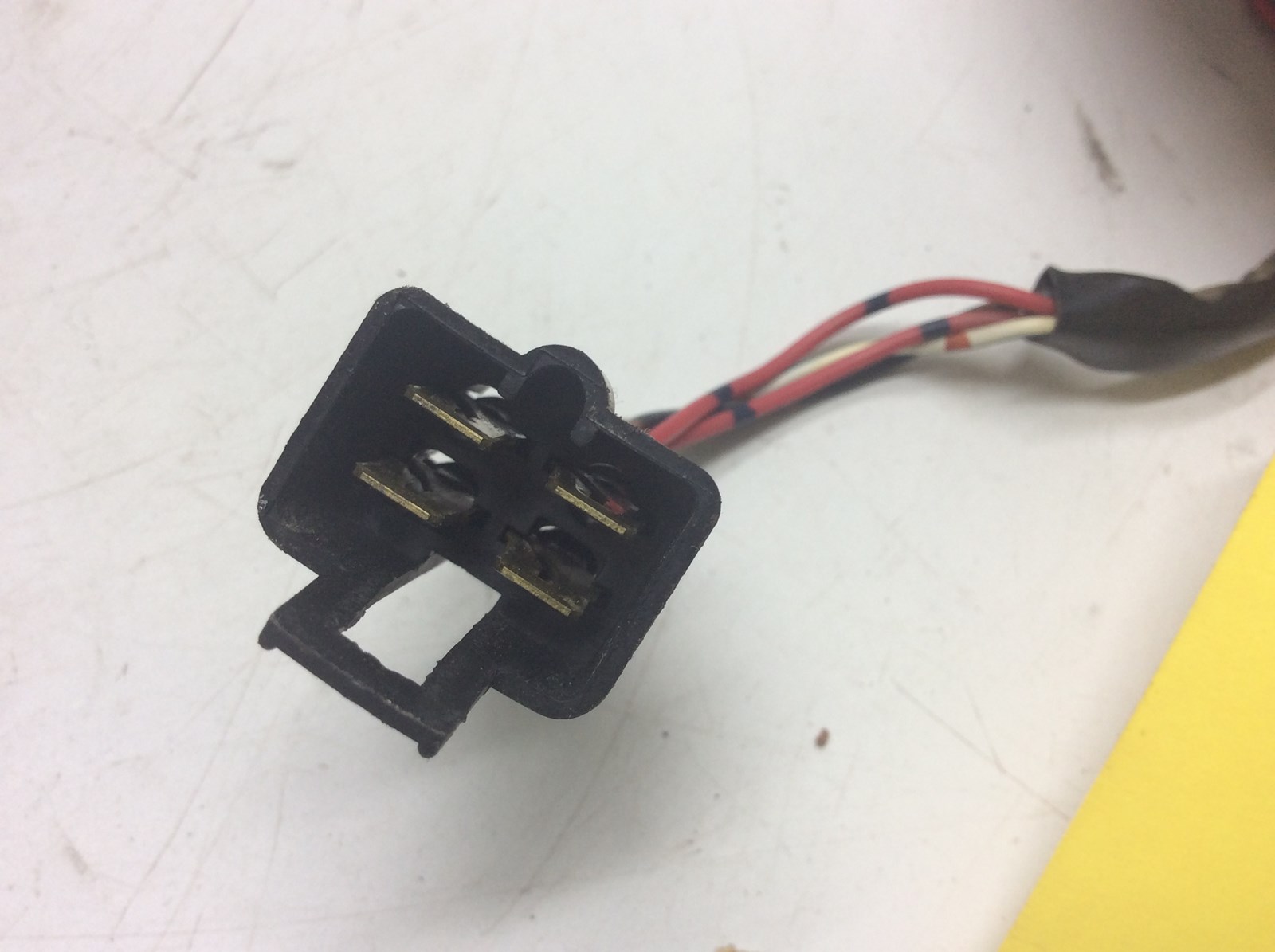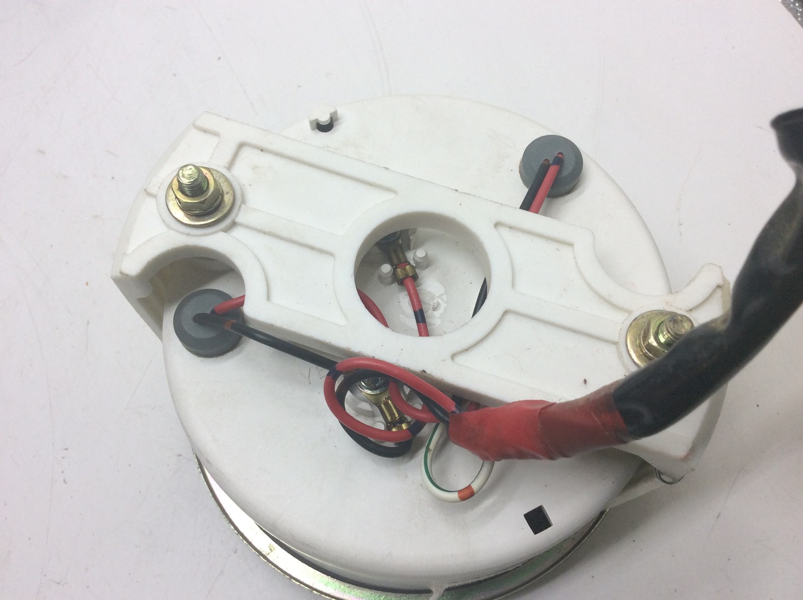 Good used tachometer. In good shape, White faced with an orange needle.