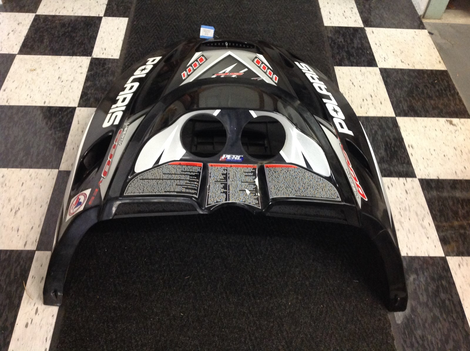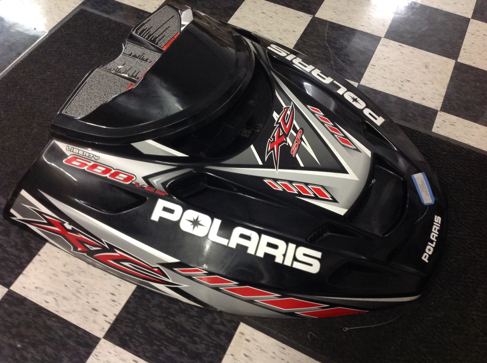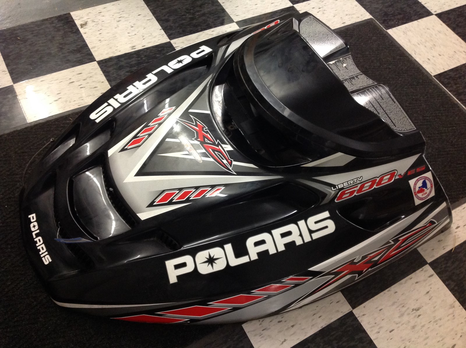 Hood. Good/used condition. Black/White/Red. Some minor scuffing around the edges. Fits 2001 XC SP models; 2002 RMK Models and well as other various models.