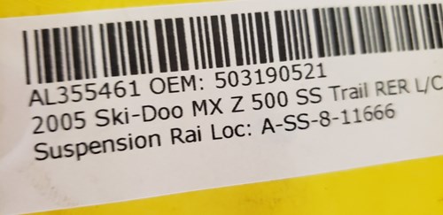 Rail- SC 3 – with Tensioner. Can be used on LH or RH by mounting tensioner. Came off of 2005 Ski-Doo MXZ 500 SS Trail. Some scuffs and dings from normal wear. Good used condition. Used on: GSX 500SS, 600 HO, 800 HO; MXZ 600 HO Renegade and more.