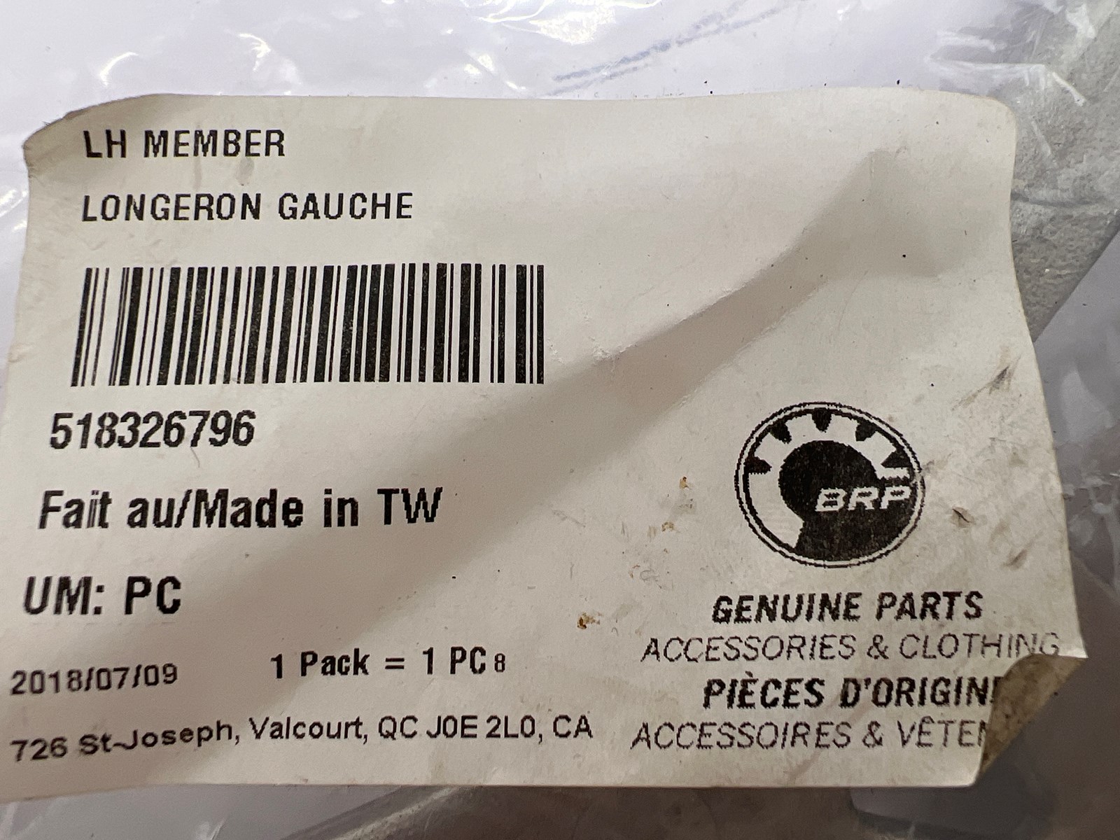 New left member # 518326796. Replaces # 518325923.