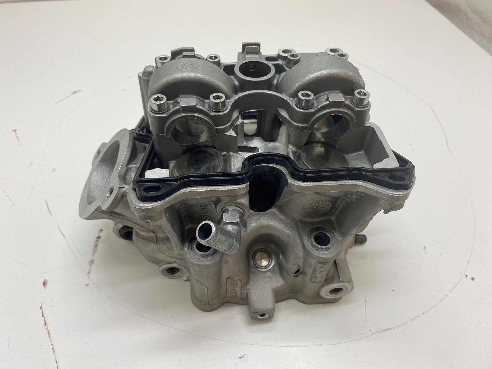New Take Off Can-Am Built Racing Cylinder Head 420623470. This cylinder head was shaved down by Precision Racing Heads. It is also ported. Unknow measurements for shaved head and porting. It is a new take off and does not look like it was ran at all, but it was put together. Comes with New Take off valve cover gasket and valves with springs and buckets.
