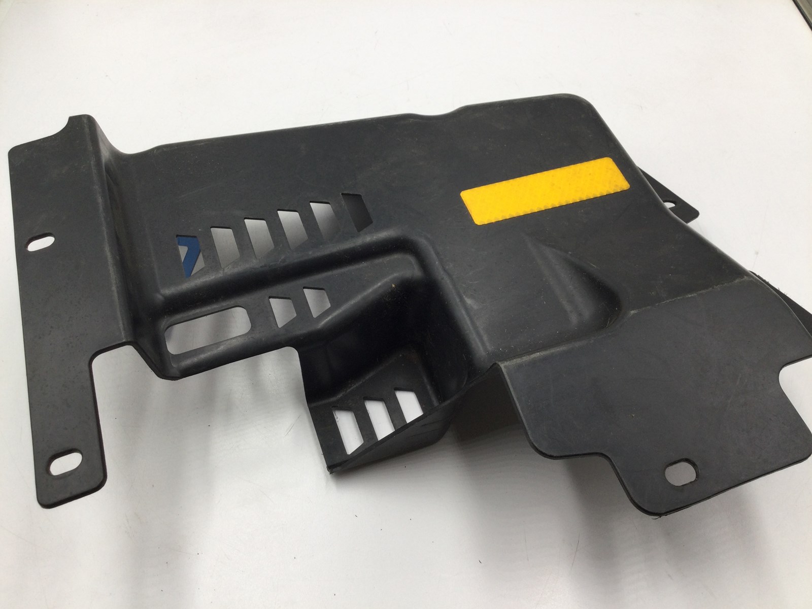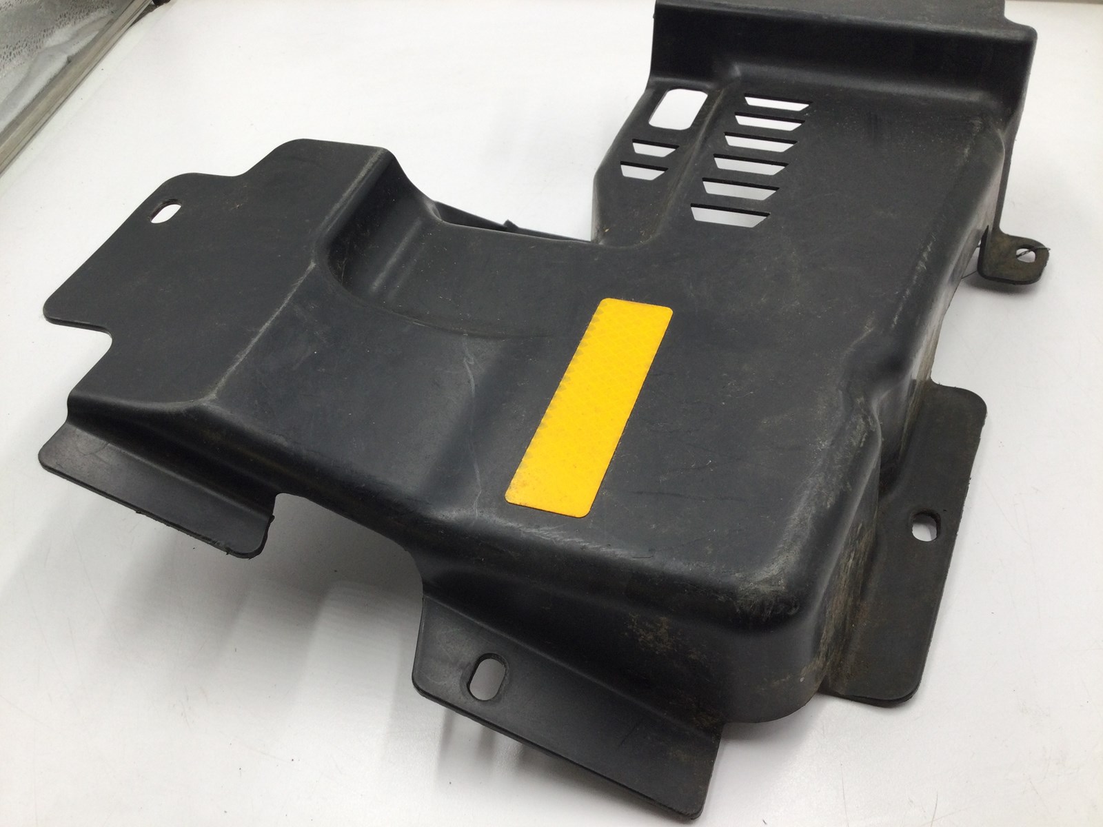Good used OEM left side wheel well panel, Black, Shows normal wear