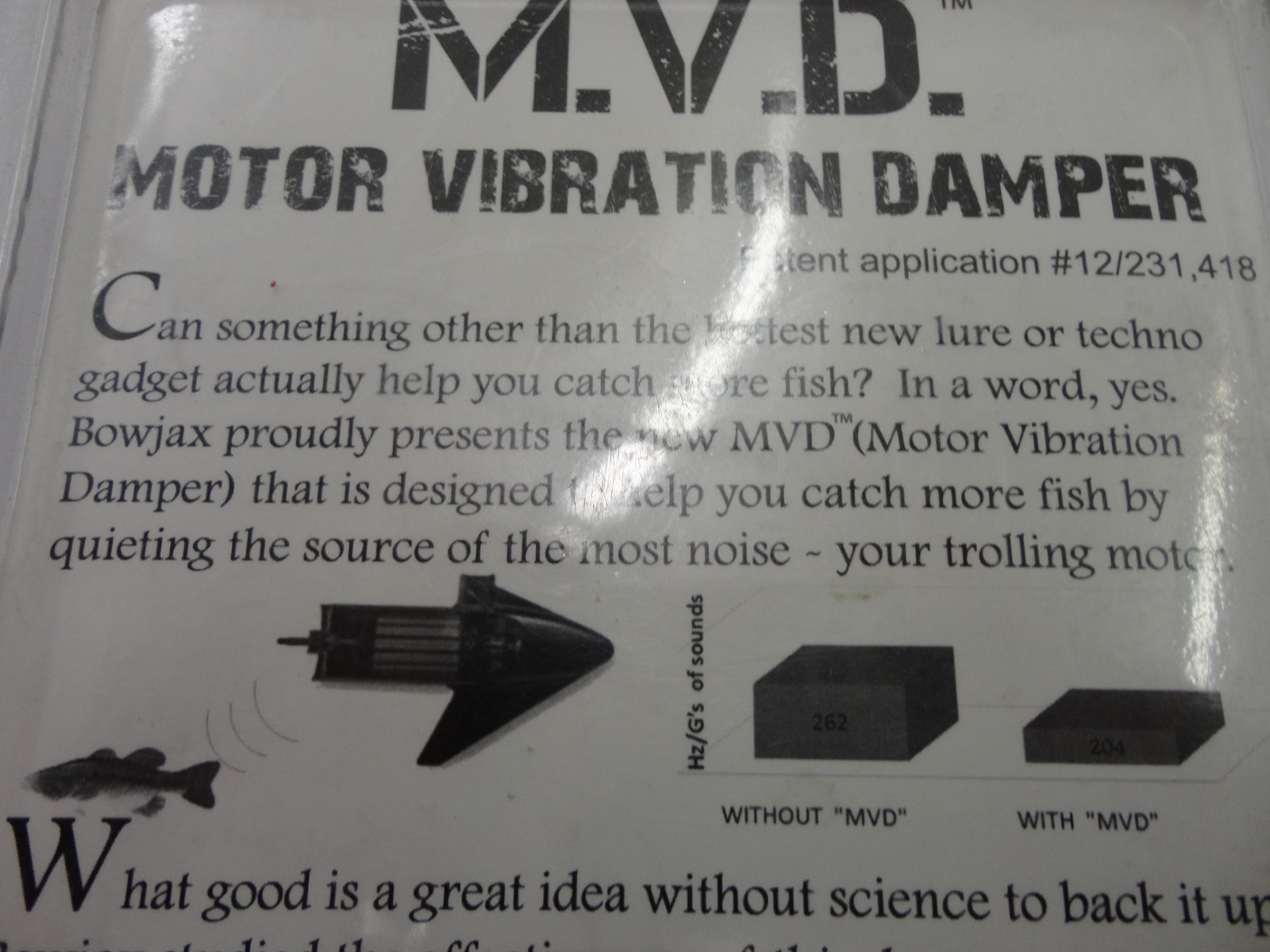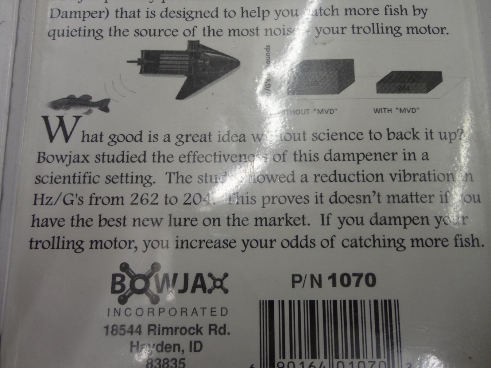Bowjax MVD (Motor Vibration Damper) – designed to help by your trolling motor. Study showed reduction vibration in Hz/G’s from 262 to 204. If you dampen your trolling motor, you increase your odds of catching more fish.