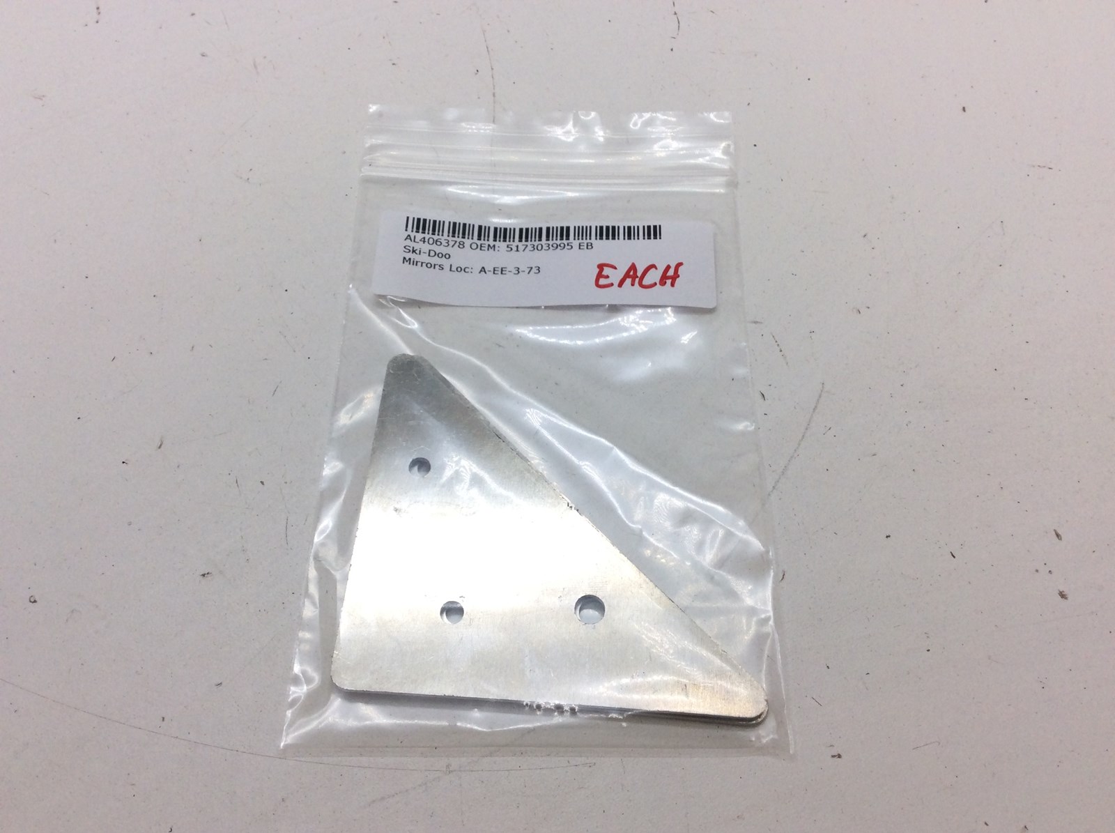 Ski-Doo Mirror Triangular Plate # 517303995. For Ski-Doo mirror kit #s 860200069 / 860200284 / 860200693. Used on Ski-Doo REV-XP / REV-XR / REV-XU Tundra models. Sold each.